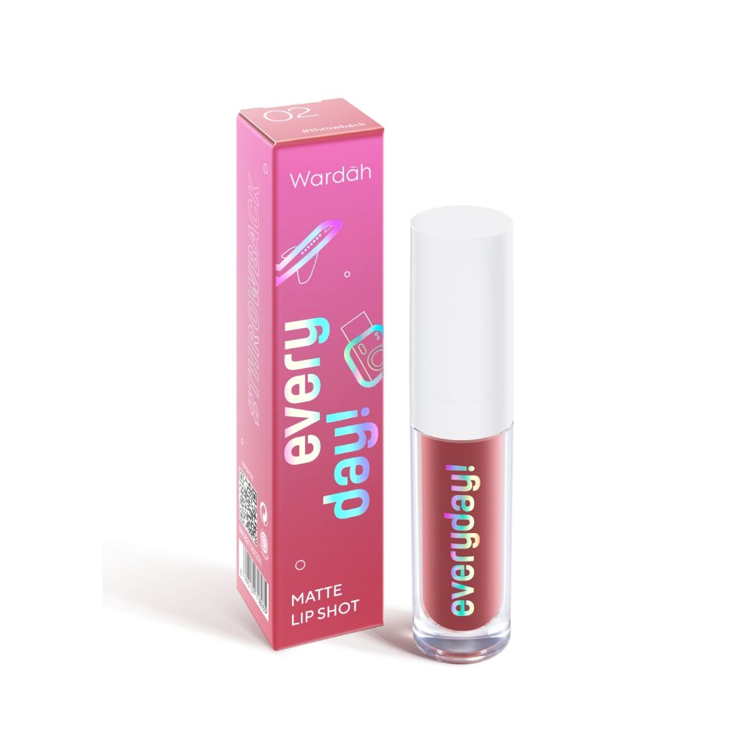 Everyday! Matte Lip Shot dari Wardah adalah lip cream dengan hasil akhir matte yang diformulasikan dengan quickset volatile oils, sehingga cepat nge-set di bibir tanpa terasa lengket. Produk ini juga mengandung Vitamin C, yang membantu menjaga kesehatan bibir saat beraktivitas.